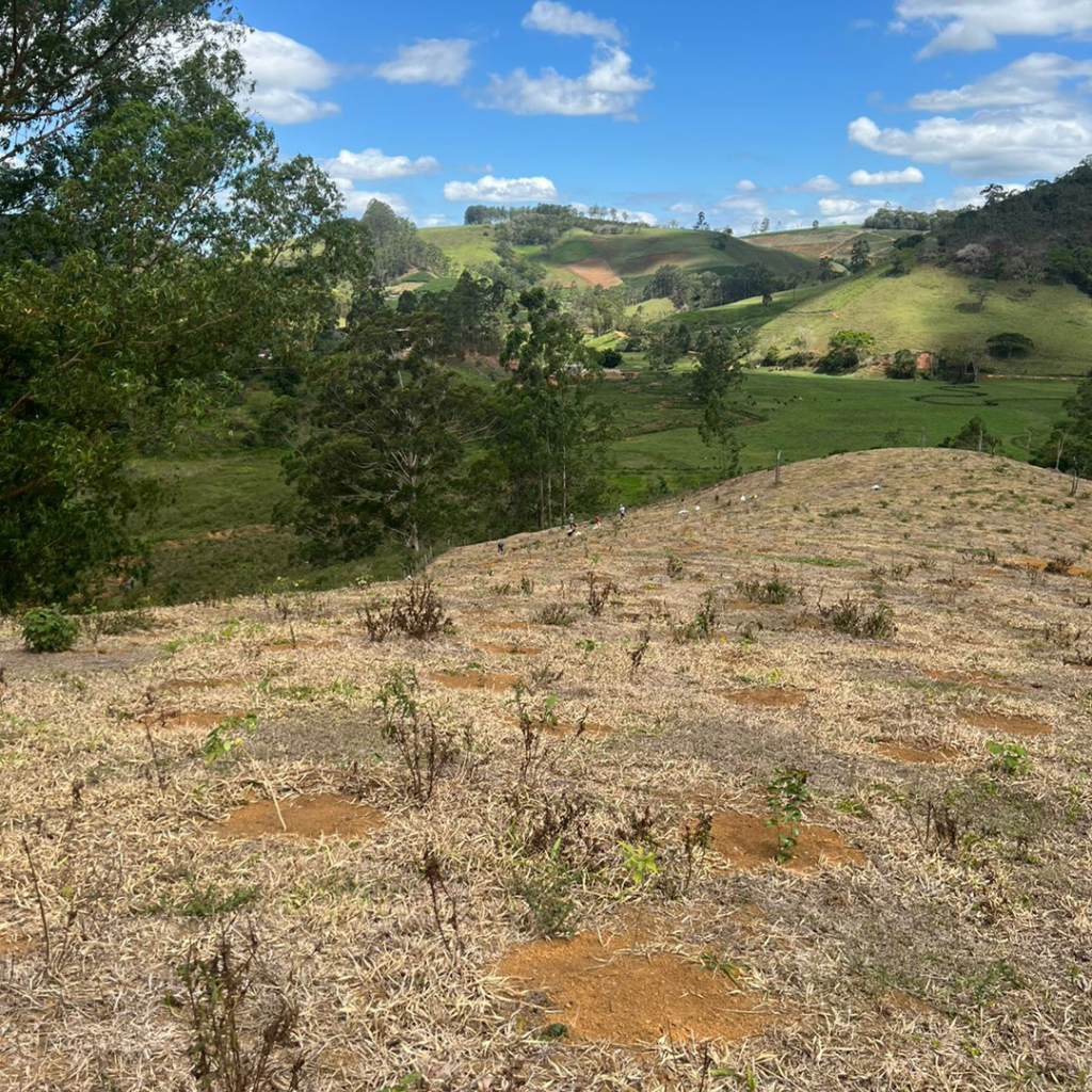 Neste método, realizamos o preparo do solo e o plantio de mudas de espécies nativas em áreas disponibilizadas pelos proprietários de terras da região. O plantio é realizado apenas na época das chuvas, com espaçamento definido e densidade de 2.500 mudas/ha.